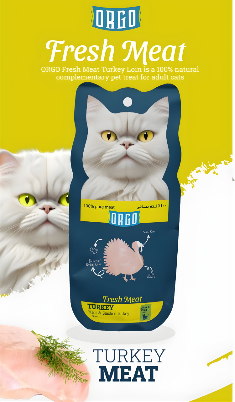 Orgo Fresh Meat Cat Treat – Turkey Meat & Smoked Turkey – 3 pcs
