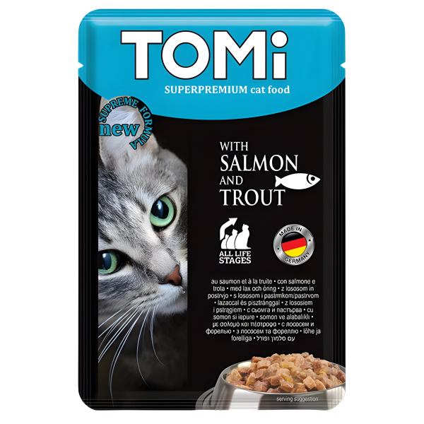 TOMi Salmon Trout canned food for cats is completely ready to eat, it must be served at room temperature.