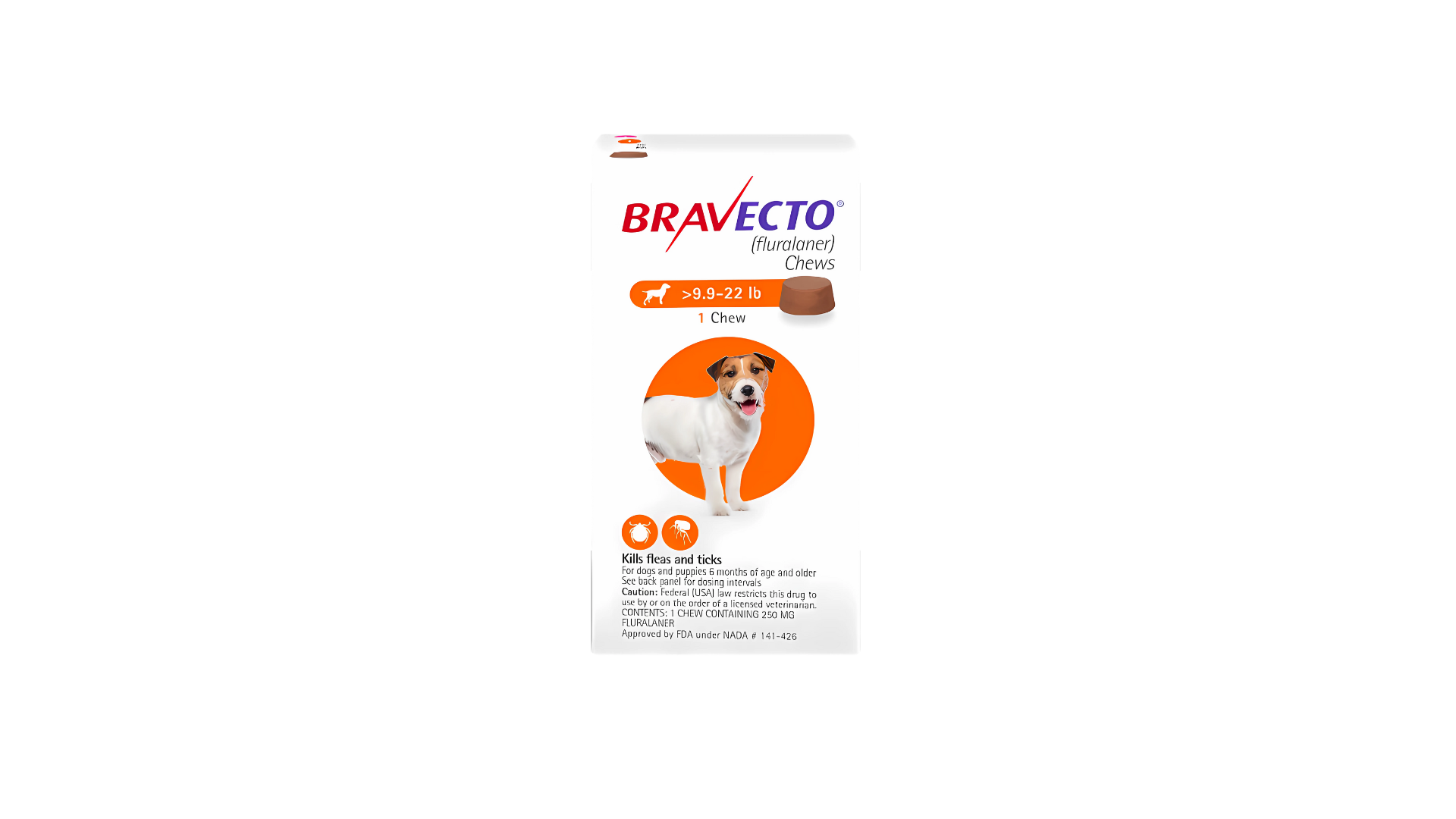 Bravecto provides 12-week flea and tick protection your dog like never before. Bravecto is a tasty oral chew that gives your dog up to 12 weeks of protection against fleas and ticks. It provides broad-spectrum and long-lasting protection which starts killing fleas within 2 hours and treats and controls 4 tick species. Per tablet
