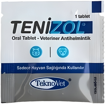 Tenizol Oral Tablet is a white coloured round tablet with a notch line in the middle. Each tablet contains 50 mg of praziquantel and 500 mg of fenbendazole.